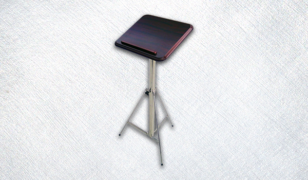 FOR SALE: Lectern stand. Stainless steel base with rosewood top. Includes cover for the rosewood top.