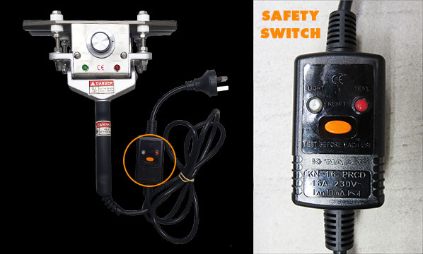 Premium quality, hand-held scissor-style heat sealer with safety switch.