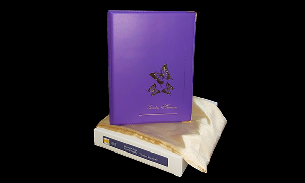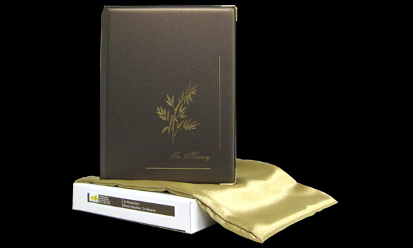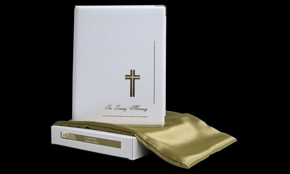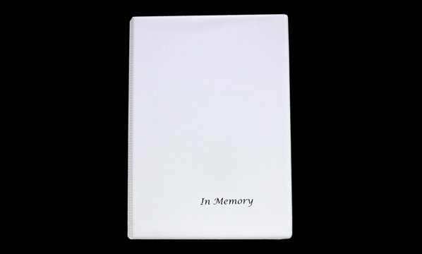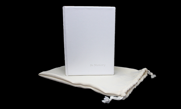 Economy Memorial Book – no bag (features a white cover with silver foil “In Memory” text).