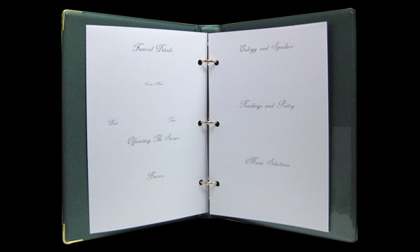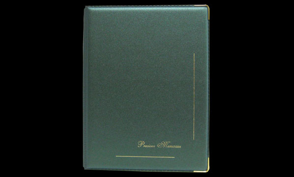 High quality Australian-made memorial book featuring a metallic green cover with gold foil.