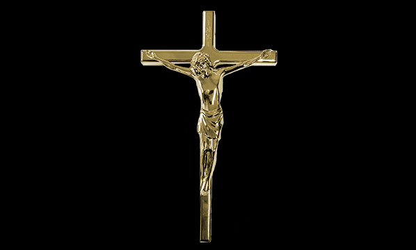 HA+ 12″ Curved Crucifix – Precisely shaped metal offers a seamless fit for curved caskets.