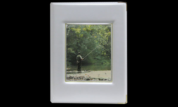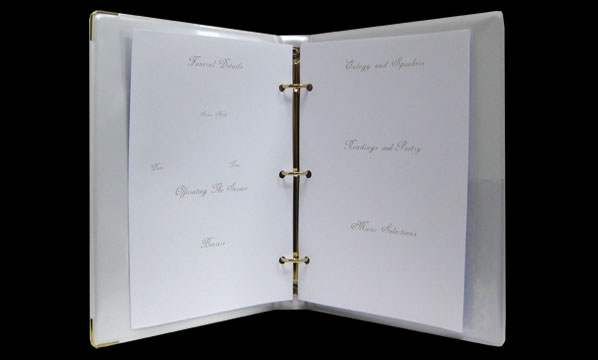 High quality Australian-made memorial book featuring a pearl cover with gold foil border around the photo pocket.