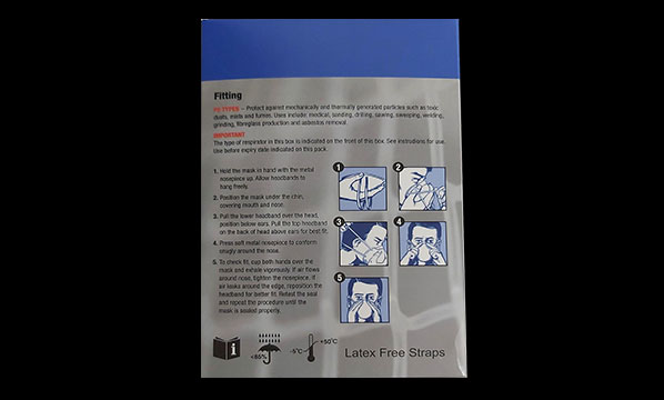 P2 Face Mask – Disposable respirator mask with head straps. Sold per pack of 20.